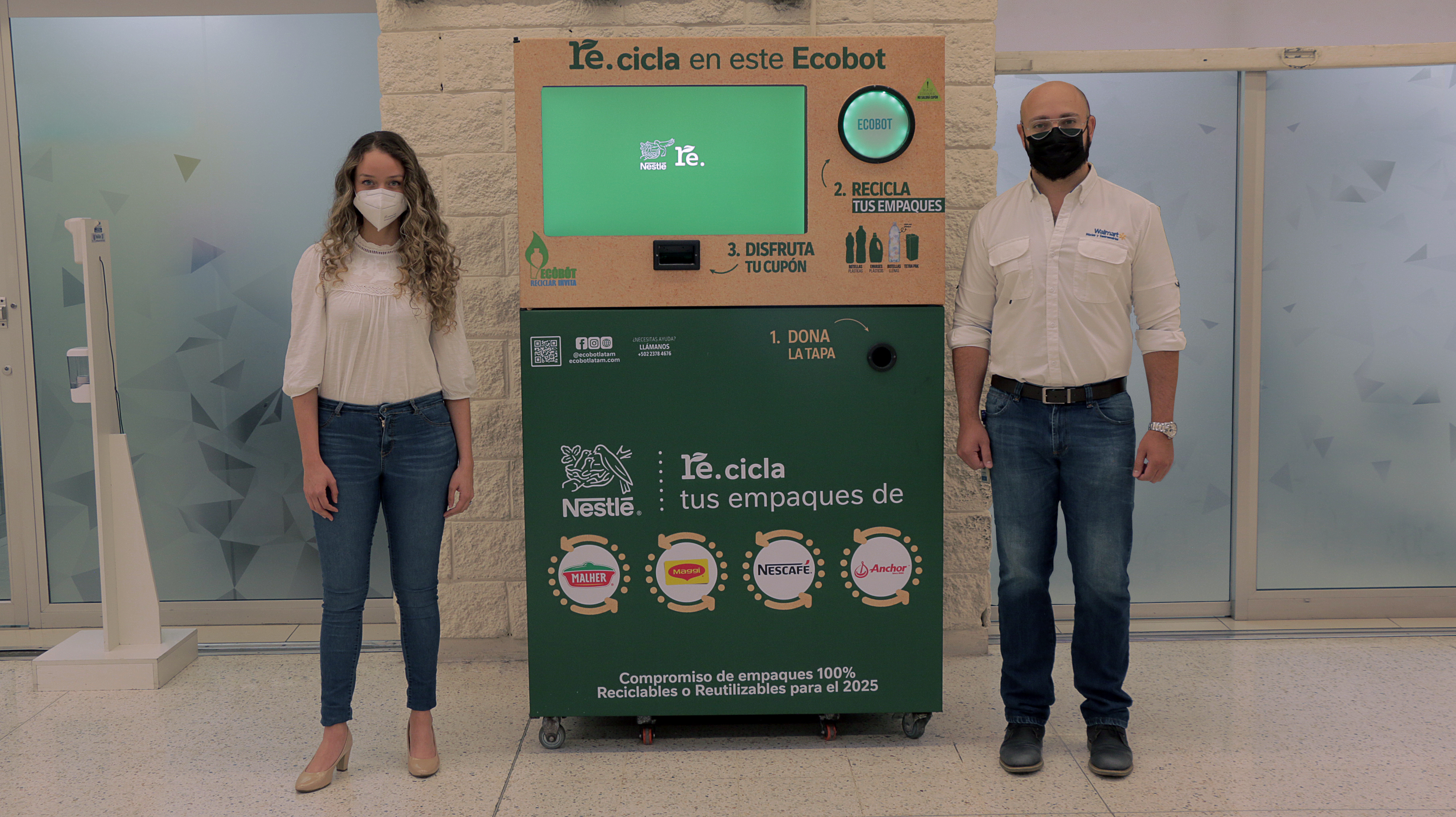 “El Ecobot de Nestlé es una máquina en la que las personas pueden depositar envases plásticos limpios y, a cambio, reciben cupones de descuentos en las marcas Maggi y Malher de Nestlé, canjeables en Walmart Roosevelt, Walmart Villanueva, Centro Comercial Peri-Roosevelt y Cayalá. Nos sentimos muy orgullosos porque inspiramos, educamos, incentivamos y premiamos a los guatemaltecos por su gestión de reciclaje”, expresó Patricio Astolfi, Director General de Nestlé Guatemala.