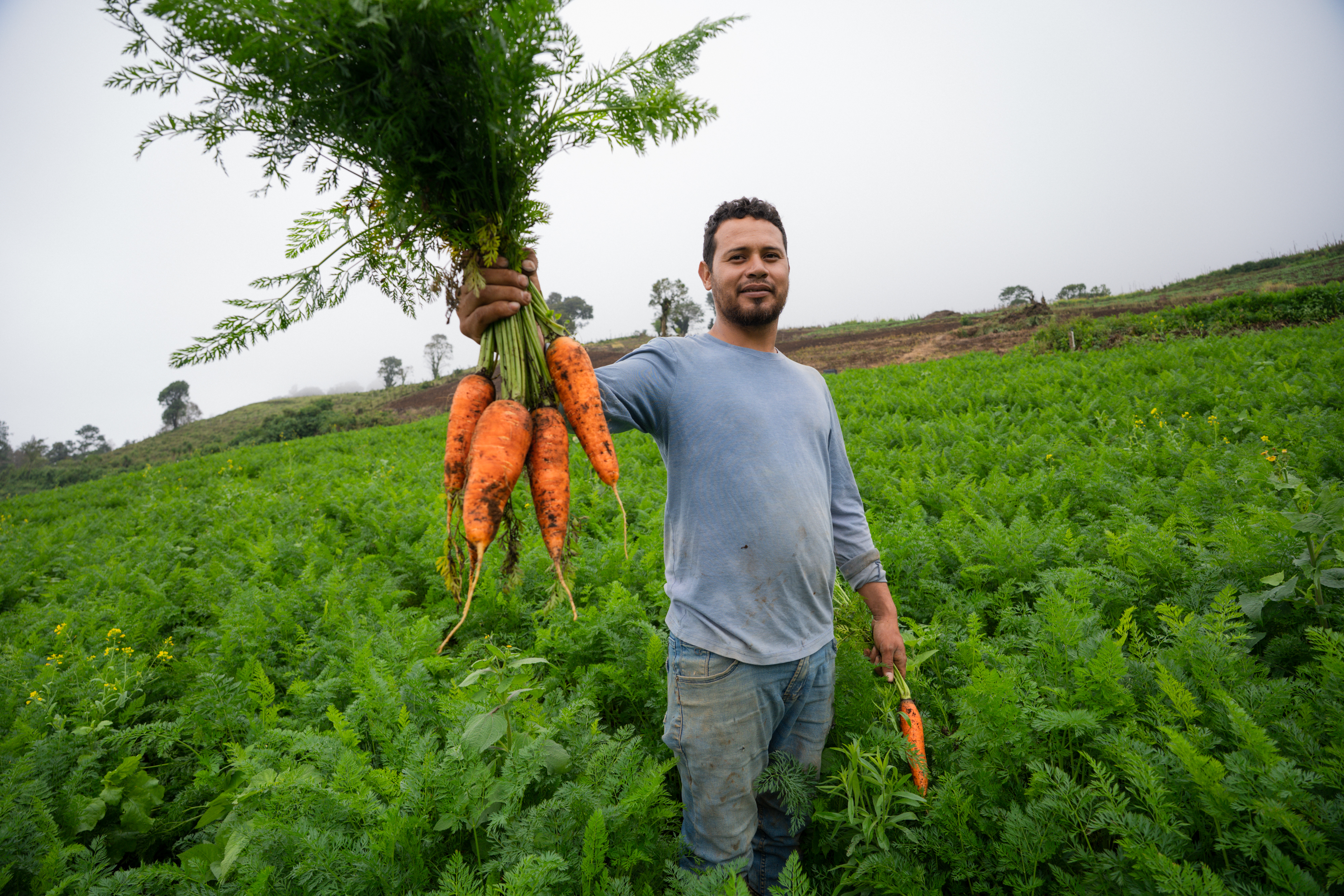"Hay muchas ventajas de venderle a Walmart: tenemos un mercado seguro, pronto pago y precios justos", afirma este joven ingeniero agrónomo de 32 años, quien cultiva varias parcelas de tierra en la aldea La Labor, Ocotepeque.